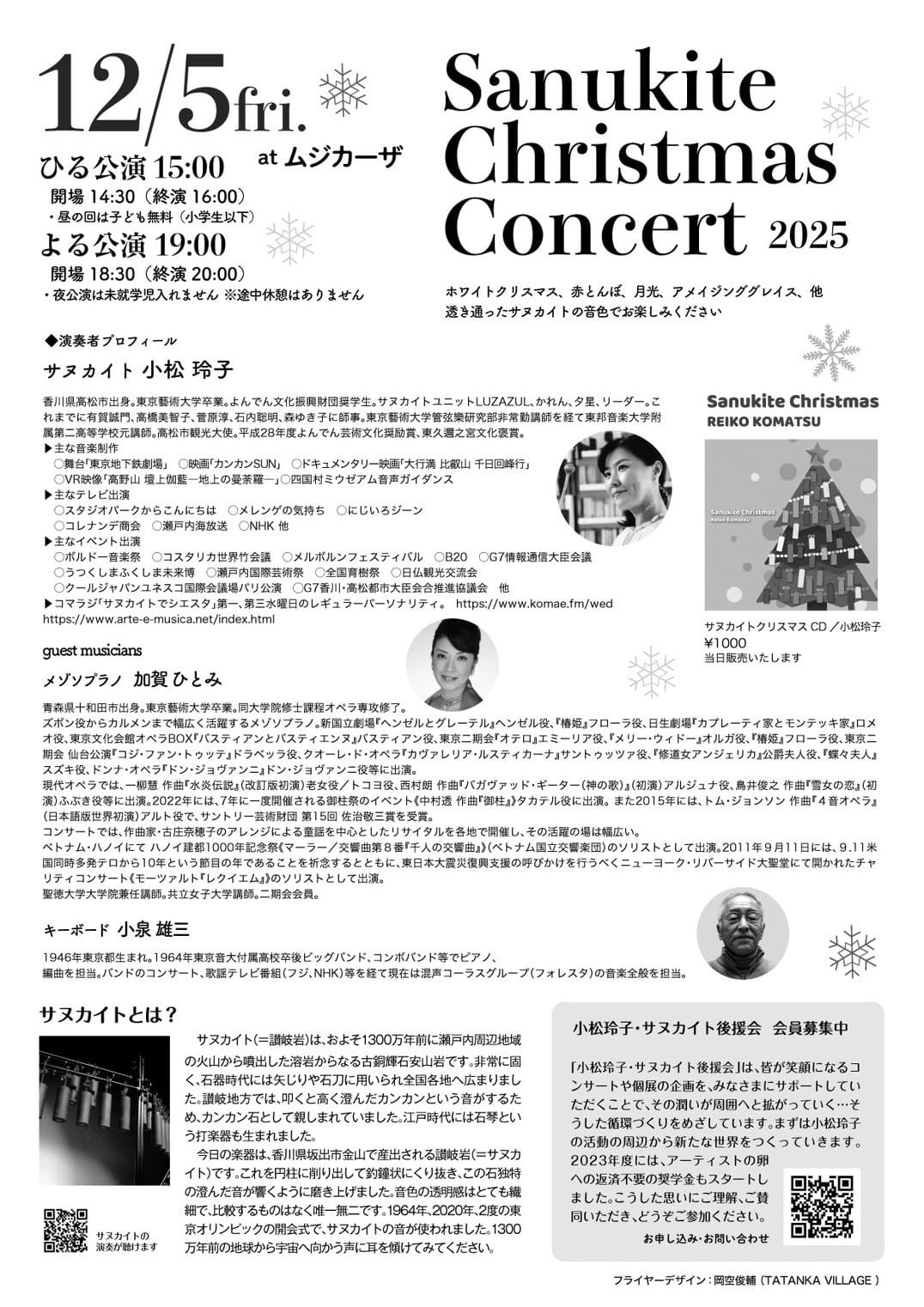 12/5(金)ひる公演15:00〜 一般 5400円 Sanukite Christmas Concert 2025 @ムジカーザ