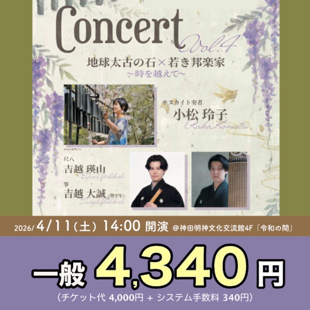 2026/4/11 [土] 14時【一般】4340円 Concert Vol.4 @神田明神文化交流館「令和の間」